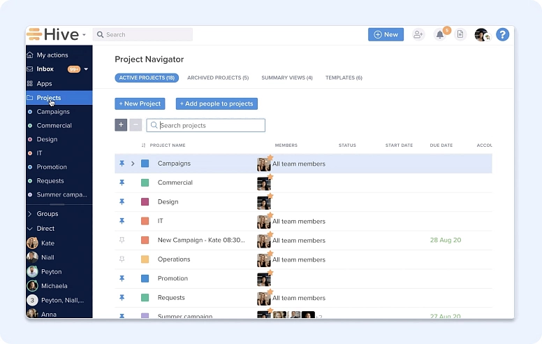 Pricing: Hive’s paid plans start at around $5 per user per month, with higher tiers adding automation and advanced collaboration features.