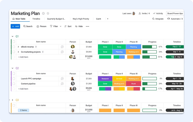- Monday.com offers workflow automation and templates with plans starting at around $8 per user per month.