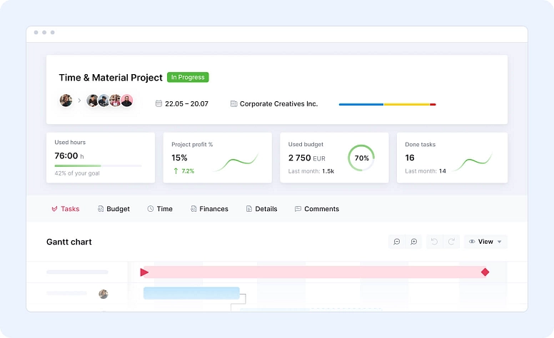 - Easy-to-use Gantt chart view for project overview.