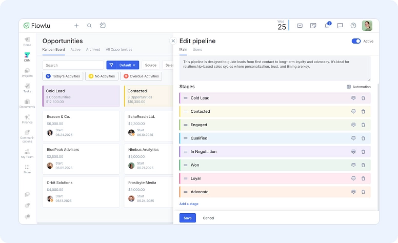 They can effectively combine data from your company and customers with many other sources to optimize your customer relationship management across each client’s life cycle. Using a CRM (like Flowlu or Pipedrive) will help you to gauge your leads’ experience with your brand, stay connected with prospects and existing clients, and enhance your customer experience to improve your profitability.
