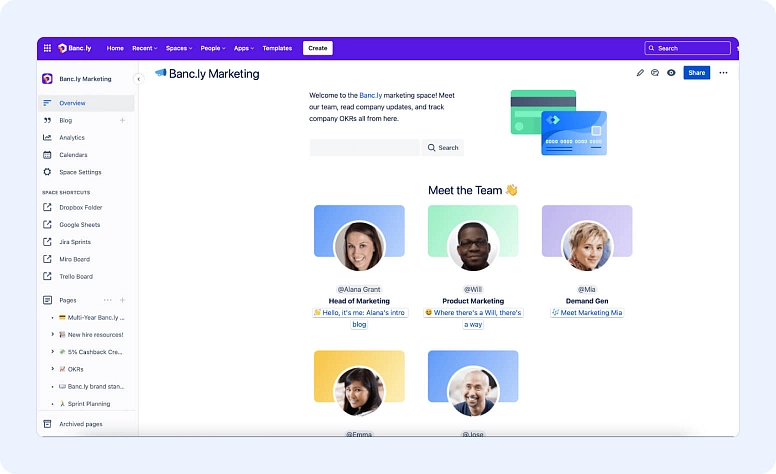 Confluence by Atlassian is a very popular software for internal documentation among teams. This software teams to collaborate, comment, and edit in real time, which is very useful when several people work together. It integrates perfectly with Jira, so it’s great for developers and product teams. Still, some users find the interface a bit complicated at first, and it can take time to set up. Pricing starts from $6.05 per user per month.