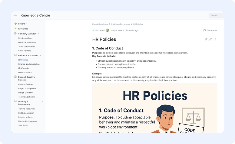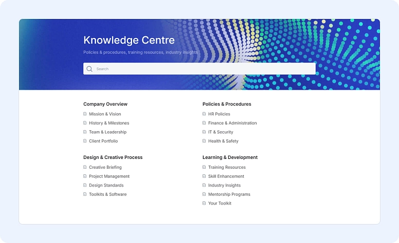 The best way is to keep all information inside one central place, like a knowledge base or documentation software. It’s important to use clear categories and short titles, so everyone can find what they need quickly. You can also group documents by department or process to make navigation easier. Always keep the structure simple, because when people find information fast, they will actually use it.
