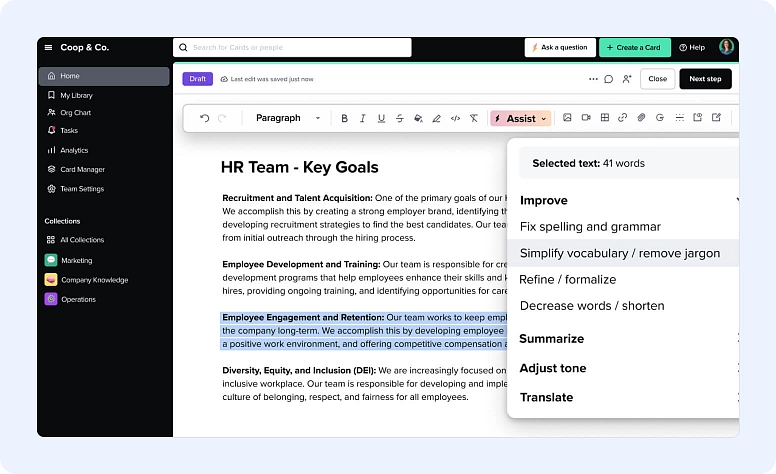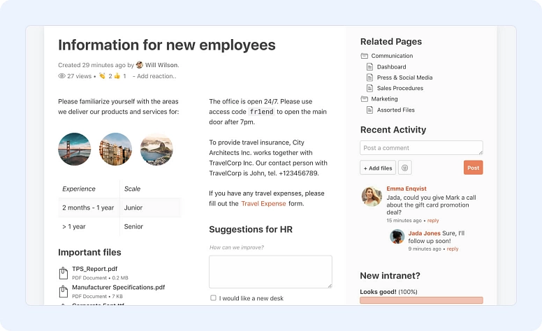Internal documentation shouldn’t be written by just one person. The reality is that it will be a lot better if you ask for contributions. The more familiar an employee is with a task, the better their contribution will be, and the better the document will end up in the internal documentation software.