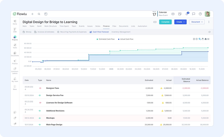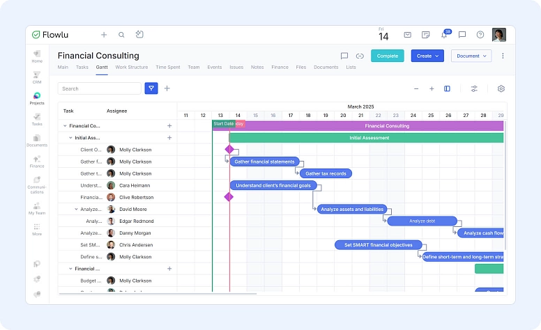 Think about a website launch with design, content, marketing, and development tasks. A spreadsheet will not show which task depends on another. If one is late, you don’t see the problem until it’s too late. This is why many teams move to project tools like Flowlu, where you see tasks, deadlines, and progress data in one place.