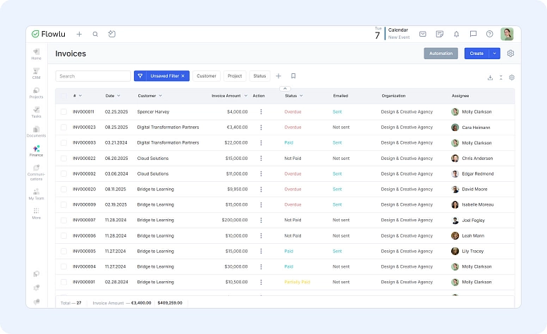 A spreadsheet might be fine for a freelancer with five clients. But for a team handling 50 projects and hundreds of customers, it quickly becomes a bottleneck.