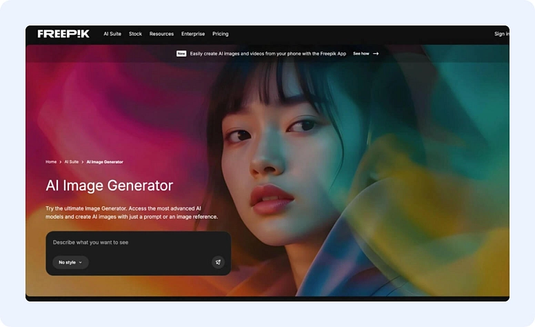 Designing from zero takes too much time. Freepik AI Image Generator helps solopreneurs skip the empty canvas fast and make custom images that fit their brand style. You don’t need design skills or expensive tools—just write what you want or upload a sample image, and the AI will do it.