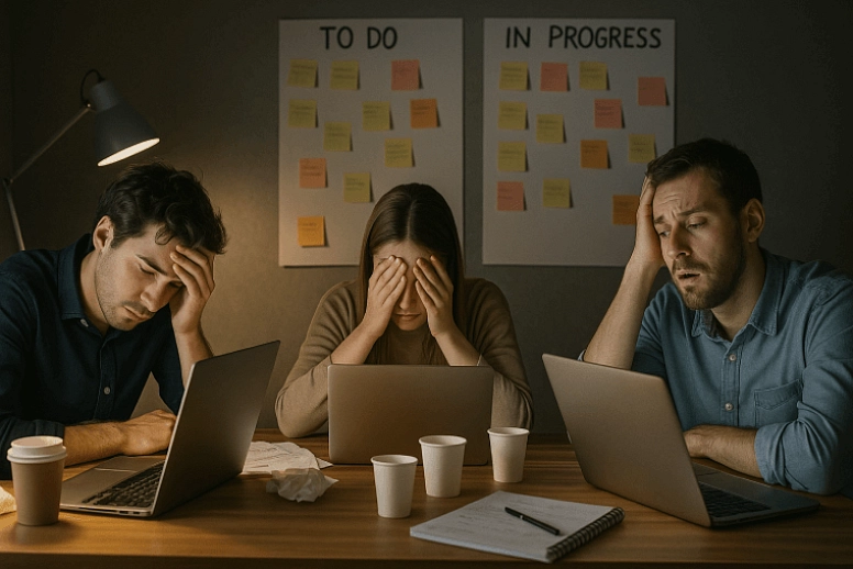 As team size grows, informal communication becomes chaotic, leading to confusion, duplicate work, and missed tasks. A centralized collaboration tool and clear communication protocols help keep everyone aligned.