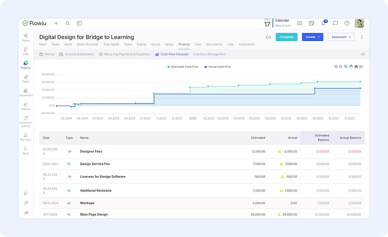 Flowlu’s budgeting tools give you full financial visibility at every phase.