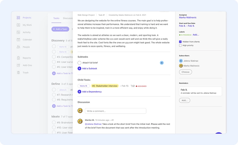 Communicating with clients is extremely important for freelancers. And a centralized project management platform where you have all information easily accessible and from which you have multiple communication channels is important to maintain professionalism, work efficiently, and maintain your clients’ happiness.