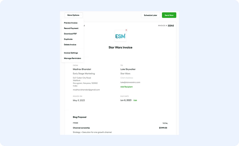 If you deal with many formal contracts with clients, then Indy may be the best choice for you. Indy is an easy-to-use tool that already comes with a wide range of templates for contracts, forms, proposals, and invoices, making your life a lot easier.