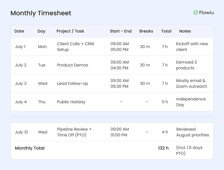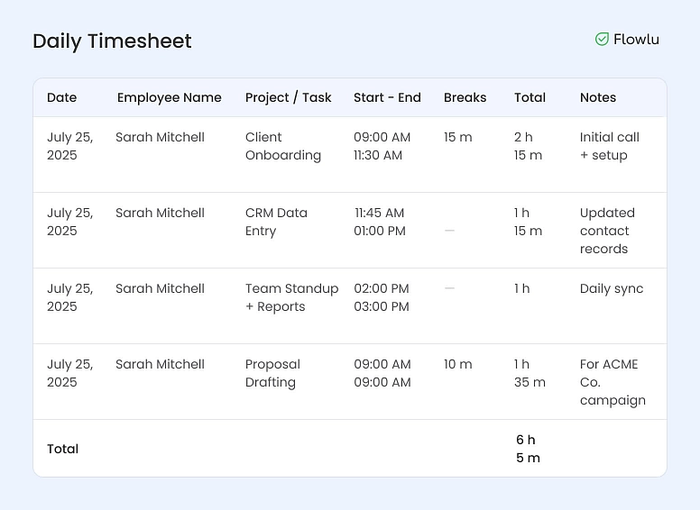 In sectors like healthcare or nonprofits, staff hours often need to be reported for funding, audits, or compliance. Timesheets simplify the process of logging those hours, managing scheduling, and ensuring accountability across the team.