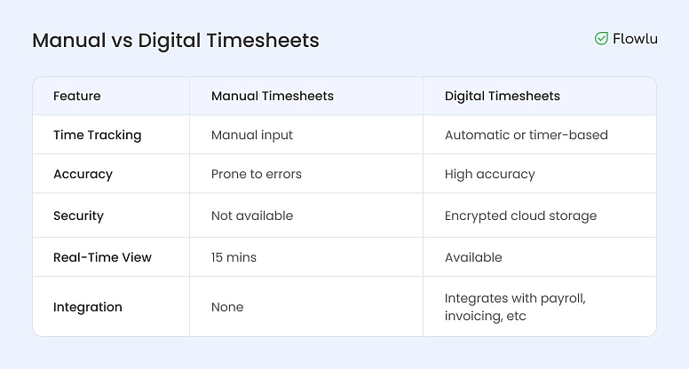 Typically, employees usually fill out their timesheets every day, week, or month. They either write down their hours by hand or use a tool that tracks time for them. Then, a manager checks and approves the timesheet before it’s used for things like payroll, billing, or checking performance.