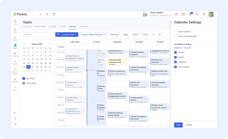 If you’re managing multiple deadlines, jumping between lists and spreadsheets isn’t practical. The new Calendar View puts tasks into context so you can quickly plan and adjust: