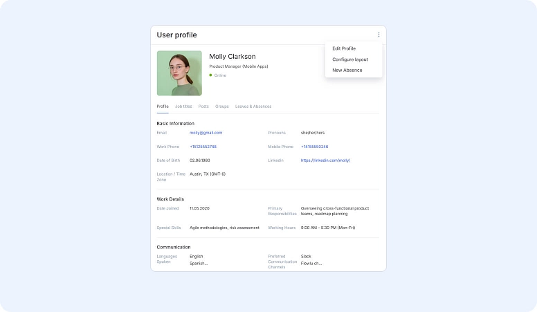 HR, operations, or team leads often need more than just names and emails. User profiles now support: