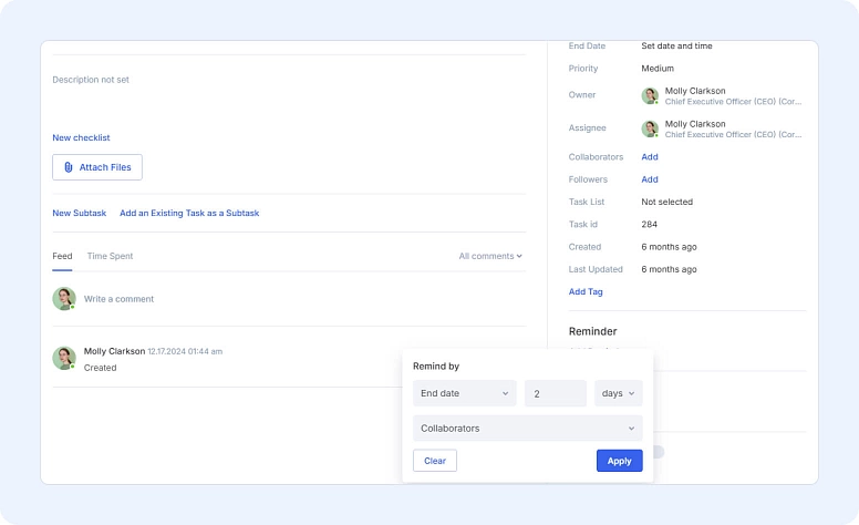 Before, you could only set task reminders for yourself, the assignee, followers, or the task owner. Now, you can also send reminders to task collaborators—perfect for making sure everyone involved gets a timely nudge.
