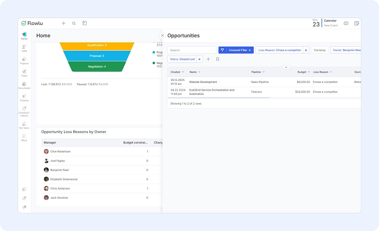 Clicking a manager’s name still opens their full list of lost deals—just like before—but now, you’ll also see exactly which reasons are driving the drop-offs.