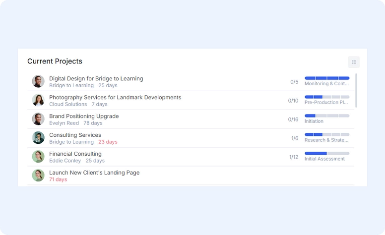 Your new control tower for all things projects. It shows: