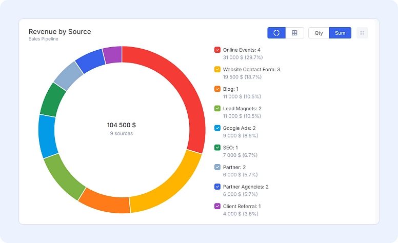 - Sortable views (by revenue or opportunity count)