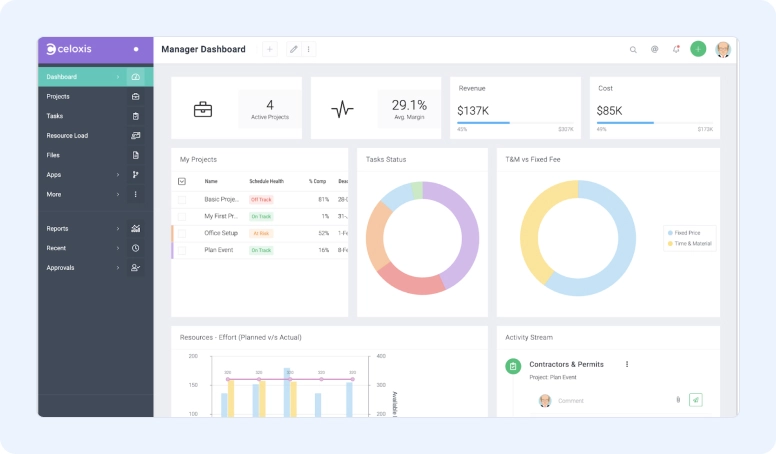 Celoxis is an all-in-one PM tool to manage complex projects and large teams efficiently. It includes a lot of nifty tools for planning, tracking, and working together.