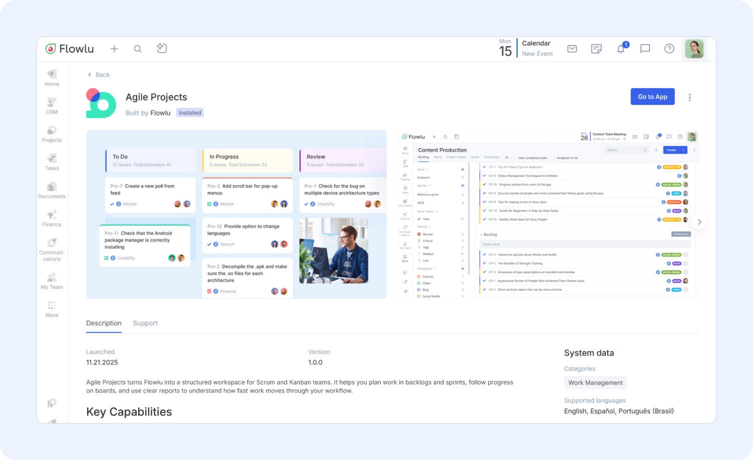 This approach allows developers to extend Flowlu’s functionality through approved integration points while keeping the core platform secure and stable.