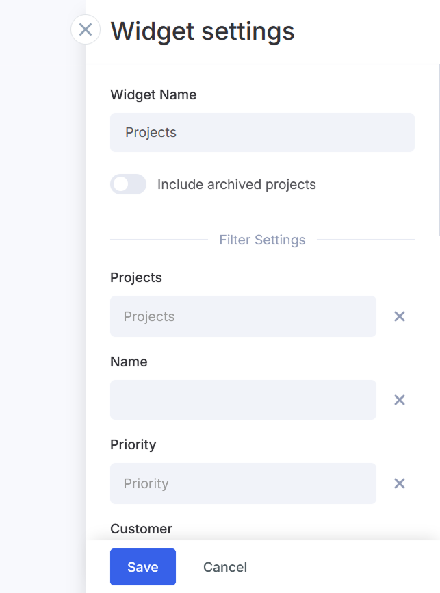 - Editar el Nombre del widget. El nombre predeterminado es "Proyectos".