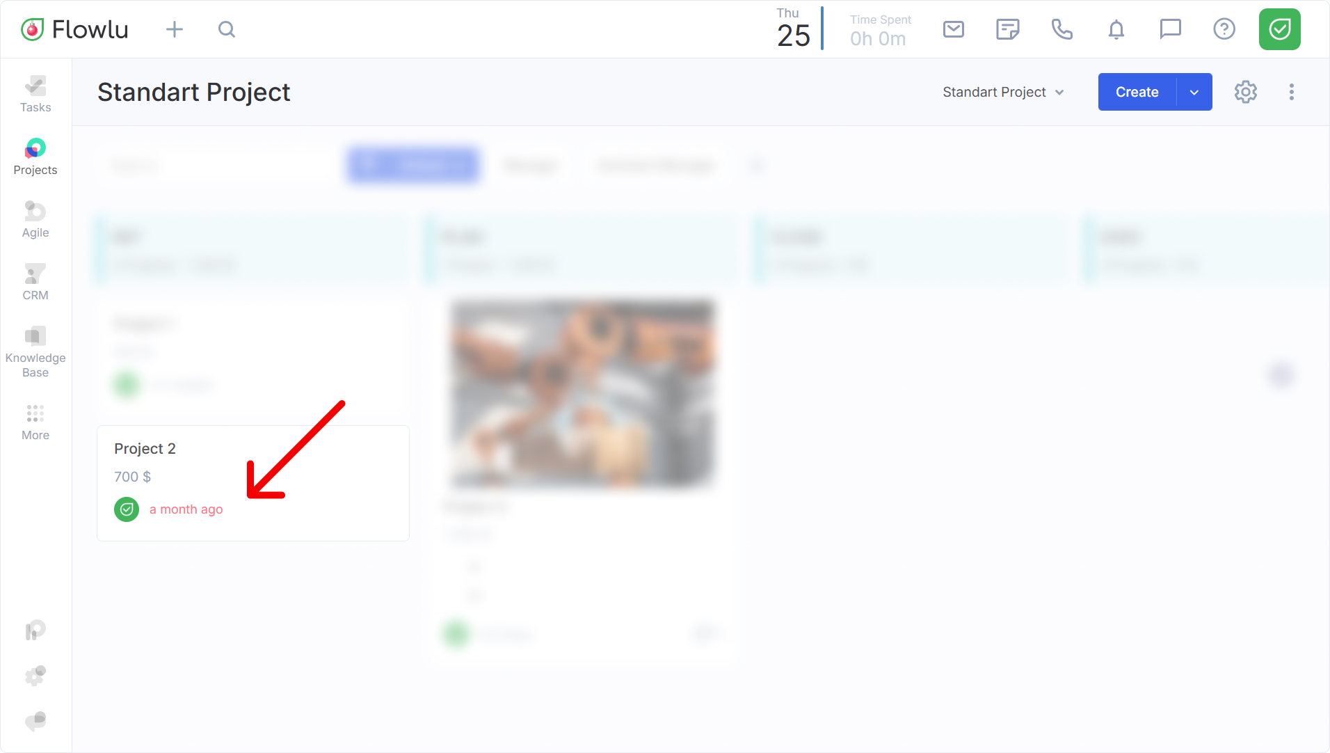 Esto añade un resaltado en rojo a las tarjetas de los proyectos activos cuyas fechas de vencimiento han pasado. Esto facilita que su equipo identifique los proyectos atrasados y tome medidas.