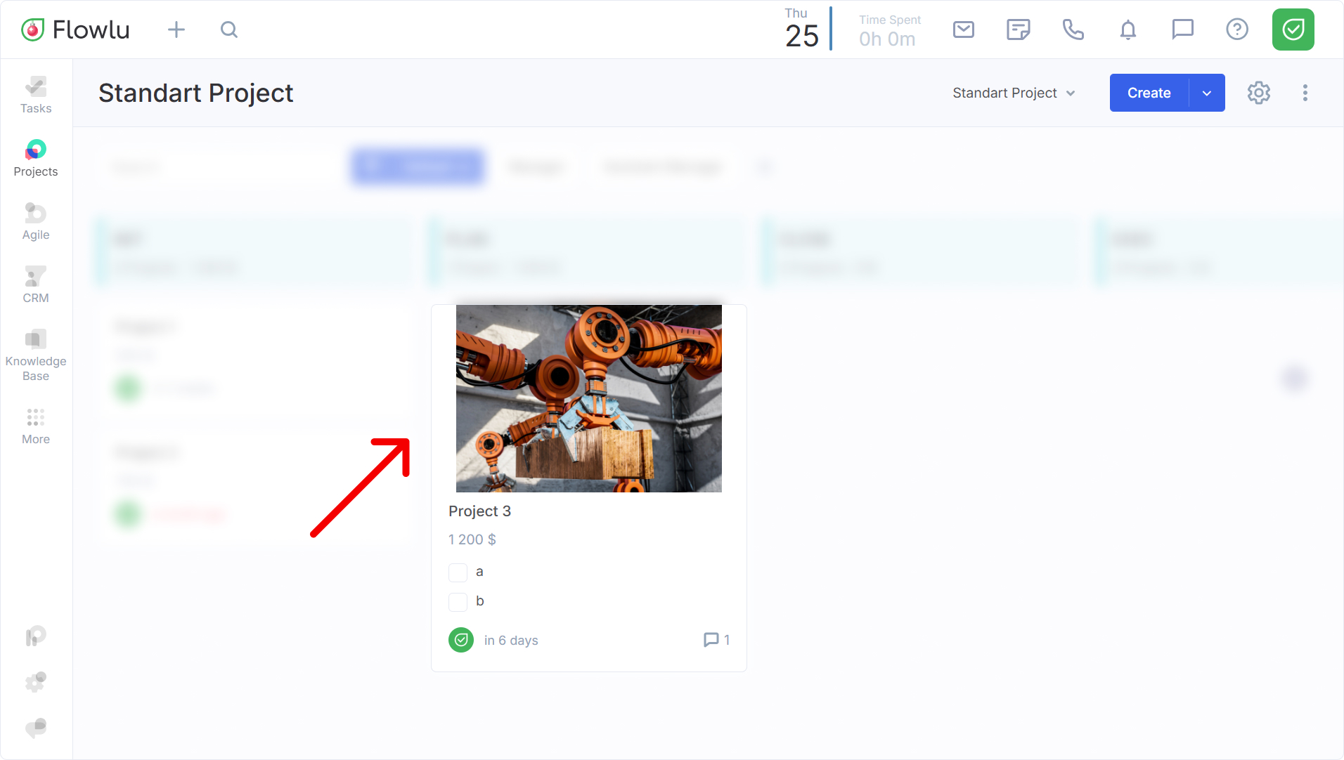 Si está habilitado, la primera imagen adjunta a los archivos del proyecto se mostrará en la tarjeta en el modo Kanban. Esto le ayuda a identificar visualmente proyectos específicos en el tablero con mayor rapidez.