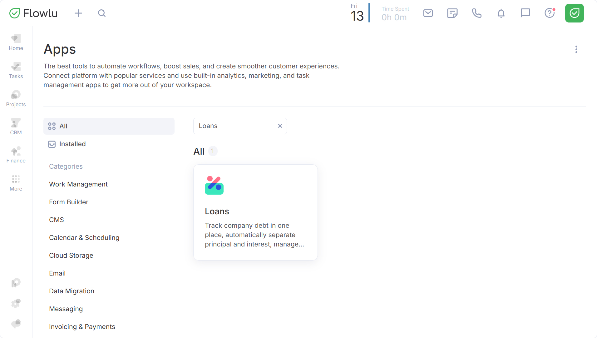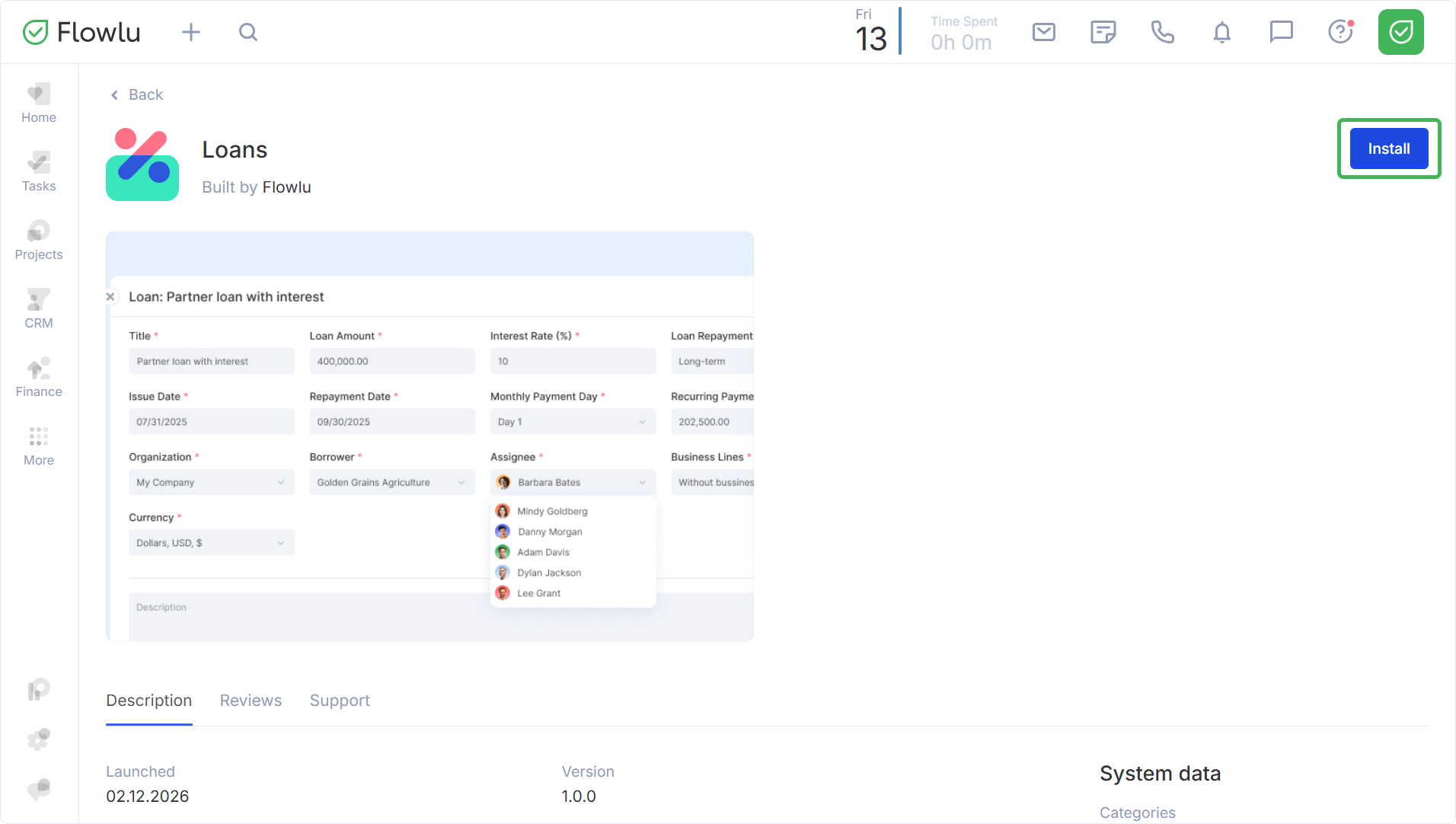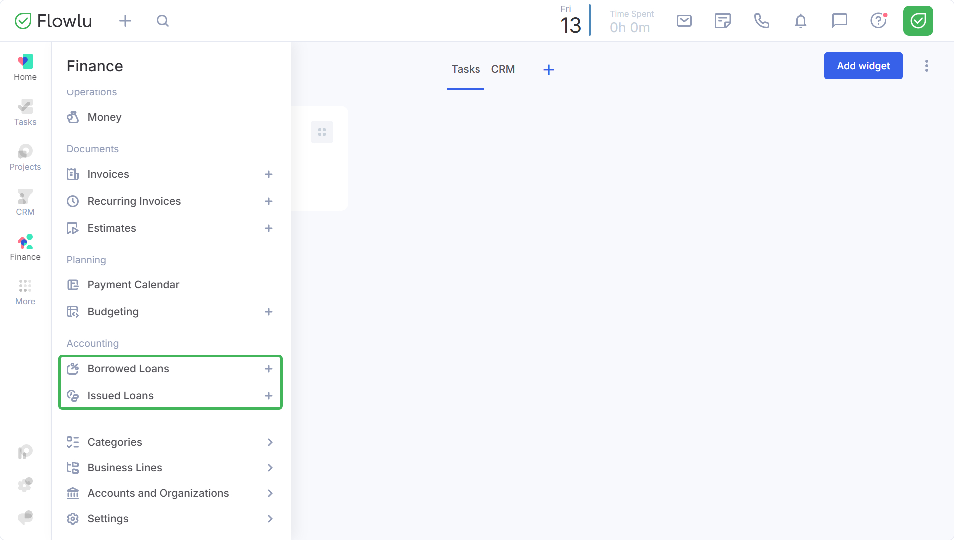 Nota: El módulo de Préstamos está disponible solo en los planes de suscripción premium de Flowlu.
