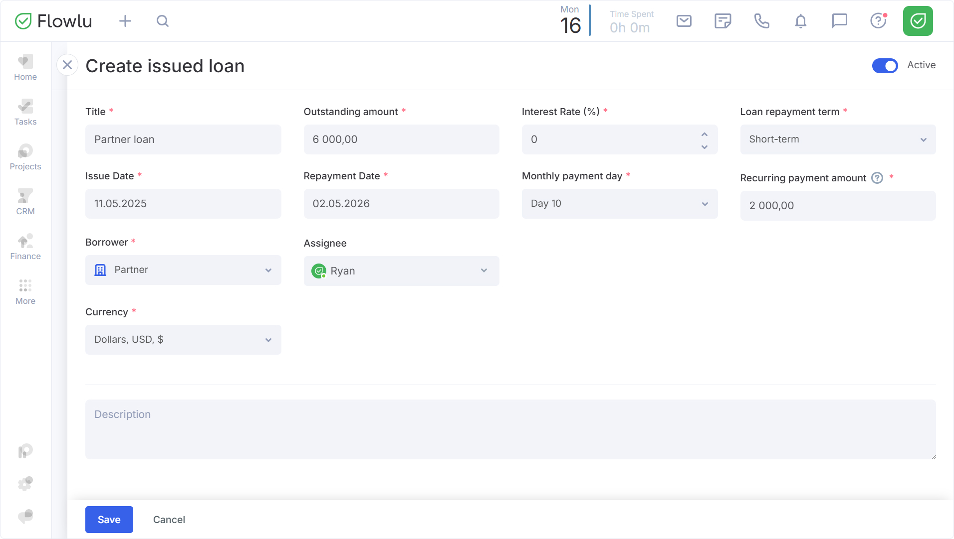 Luego, seleccione el préstamo de la lista de préstamos activos y guarde los cambios.