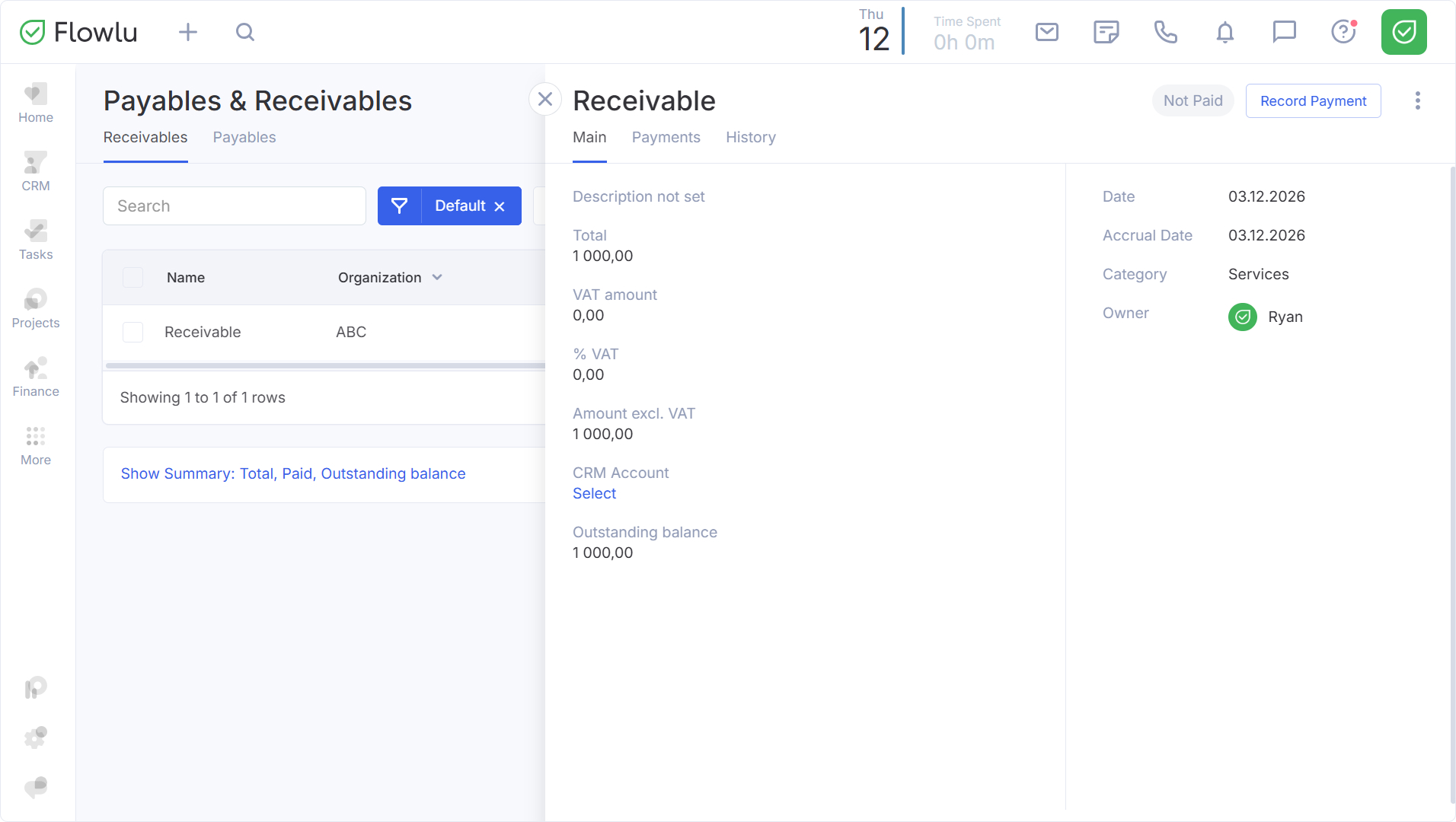 Tras guardar, el registro aparecerá en la lista y su ficha se abrirá a la derecha.
