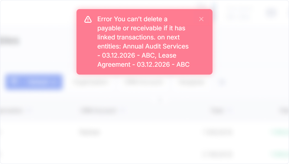 Tenga en cuenta que solo puede eliminar obligaciones con el estado "No pagado", es decir, aquellas para las que no se han registrado pagos. Si necesita eliminar del sistema una obligación que ya ha sido pagada parcial o totalmente, primero elimine o desvincule los pagos asociados.