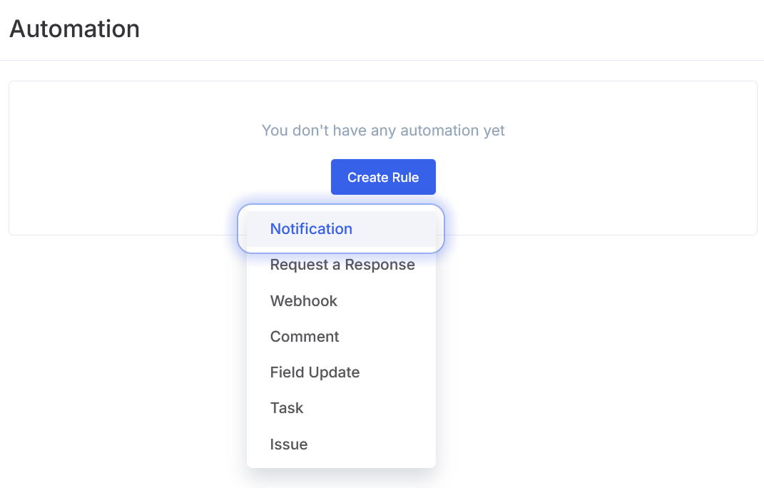 1. Para agregar una notificación automáticamente, haz clic en el botón "Crear" y selecciona "Notificación."
