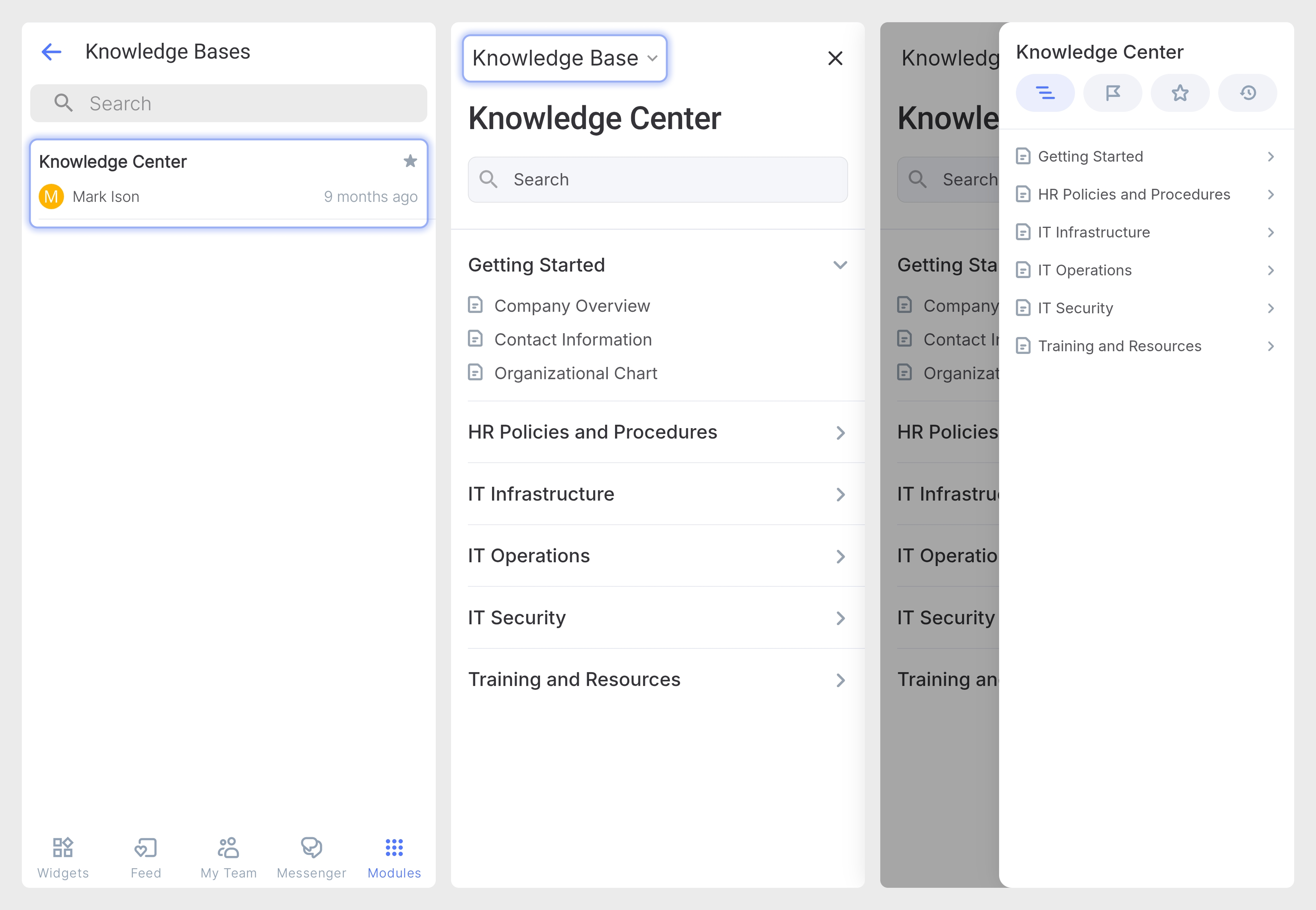 - Verá una lista estructurada de las categorías principales (p. ej., "Primeros pasos", "Políticas y procedimientos de RR. HH.").