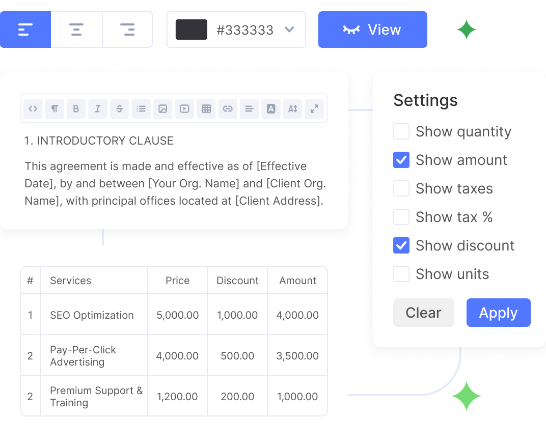 Con Flowlu Free, puede incorporar 2 usuarios, crear un número ilimitado de facturas y presupuestos, así como personalizarlos según su marca.