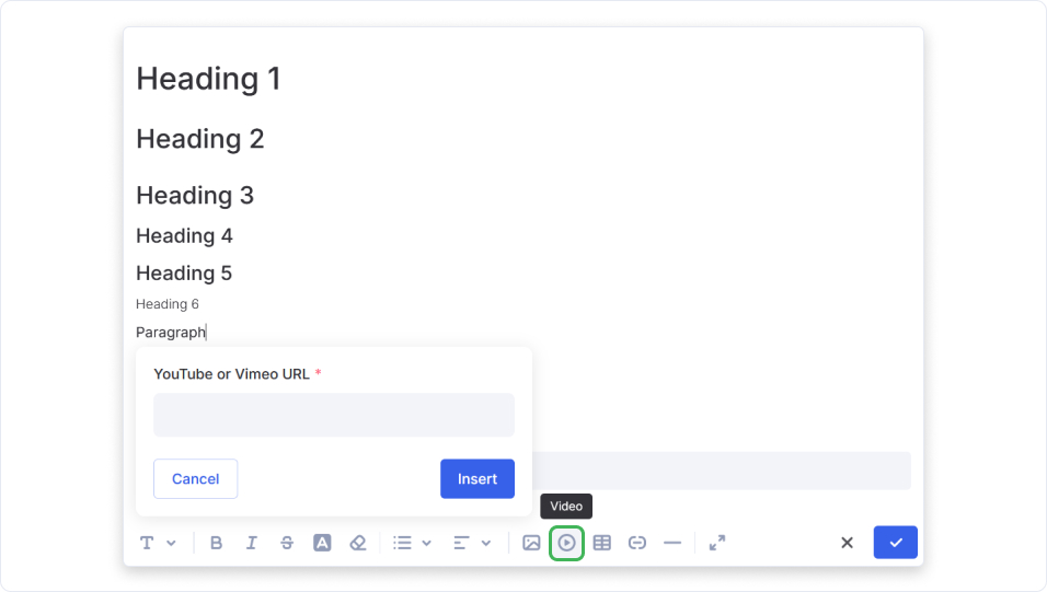 You may also embed video content from external platforms like YouTube or Vimeo using a direct link.