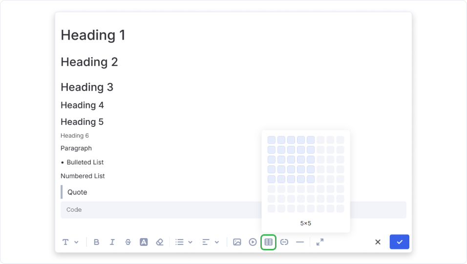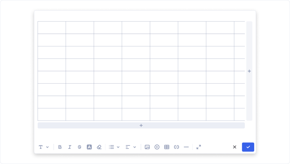 The table tool allows you to build structured data grids with a customizable number of rows and columns.