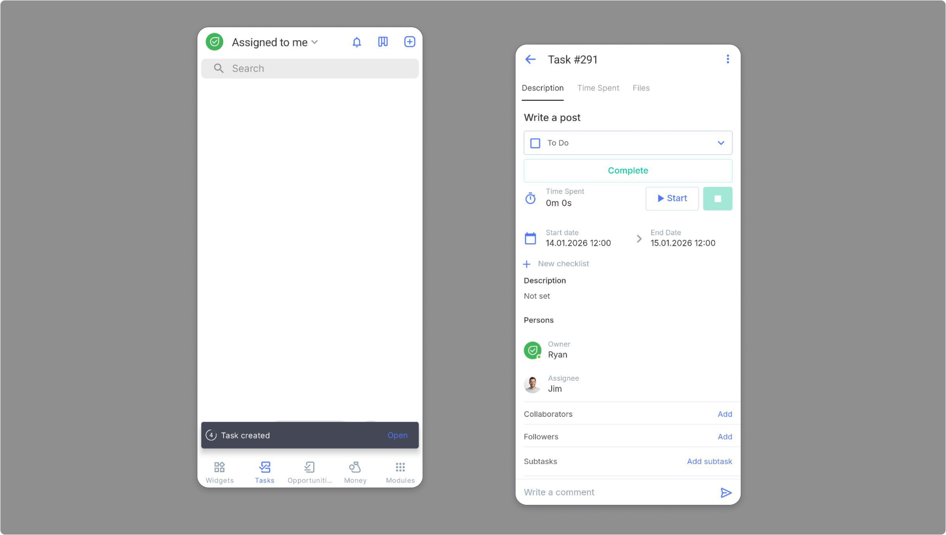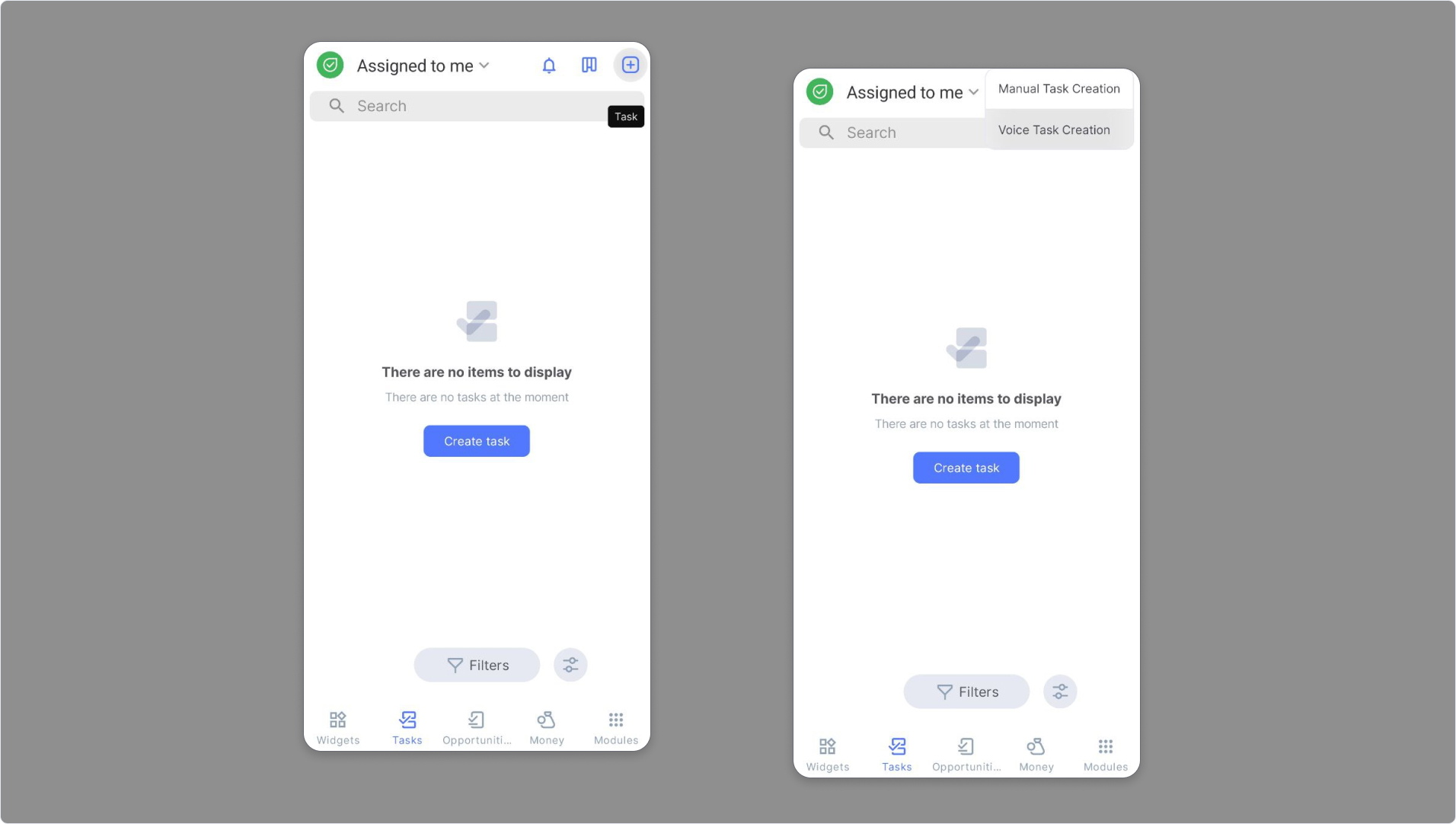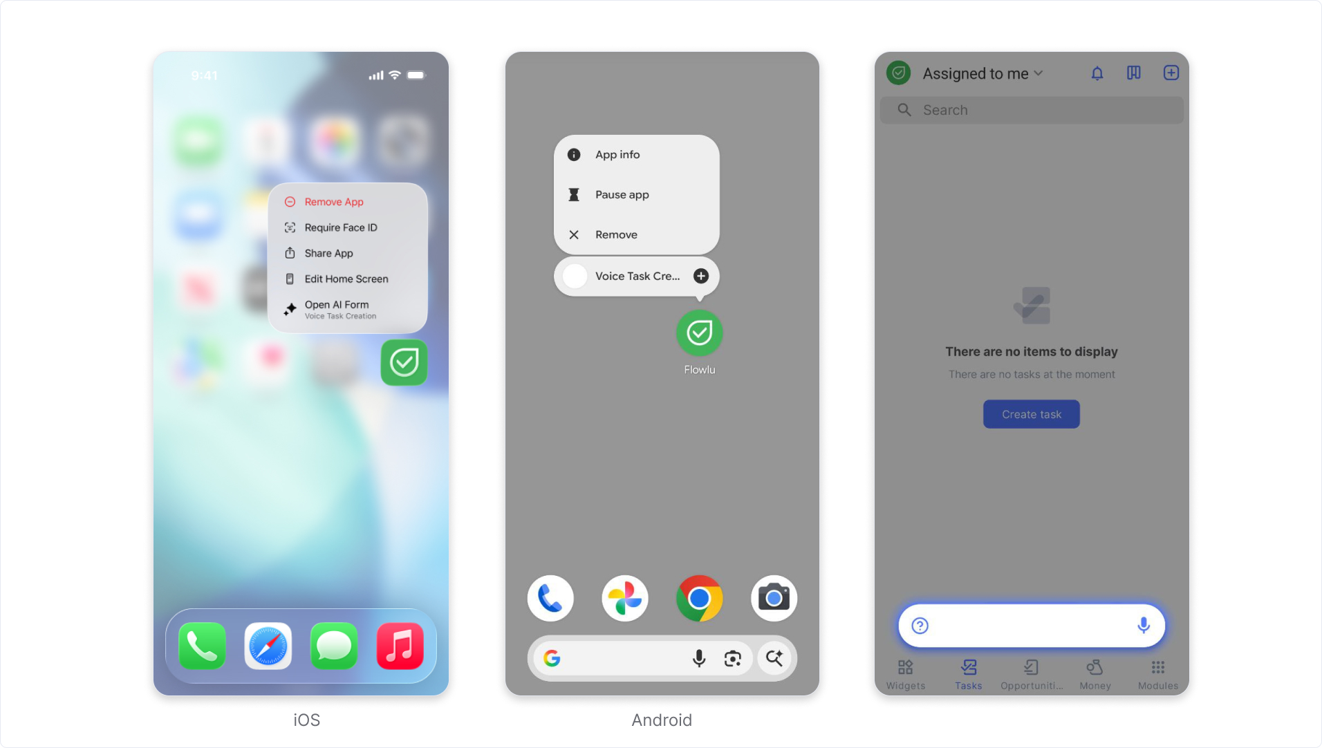 You can also create a task using your voice while on the Tasks tab in the Flowlu mobile app: