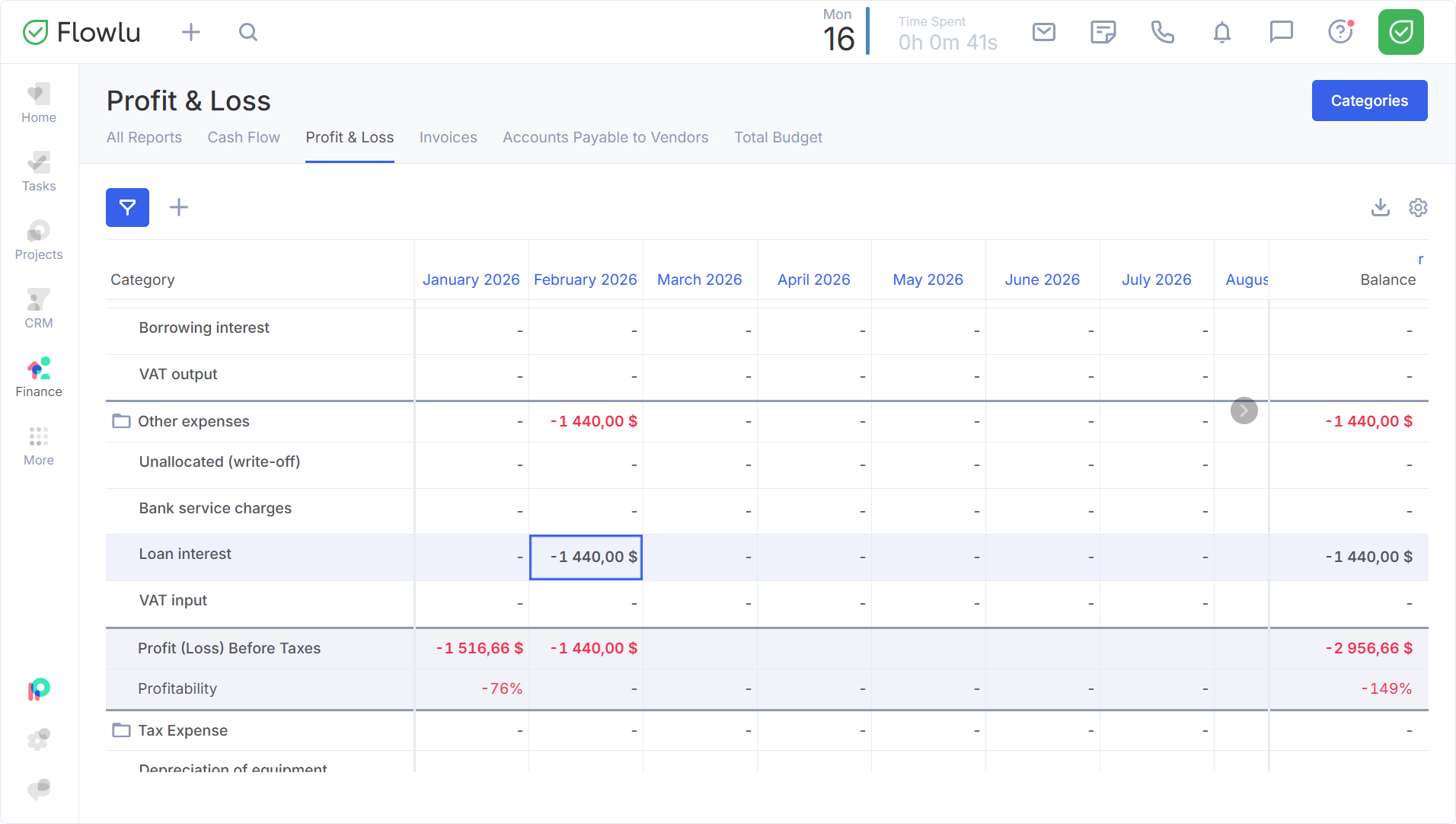 - Loan Interest — separately with P&L status.