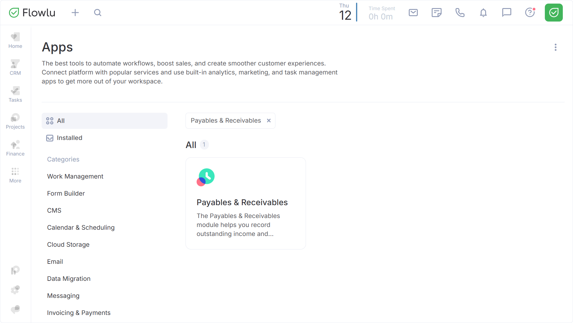You can access the Payables & Receivables module through the Finance module menu — a corresponding subsection will appear there.