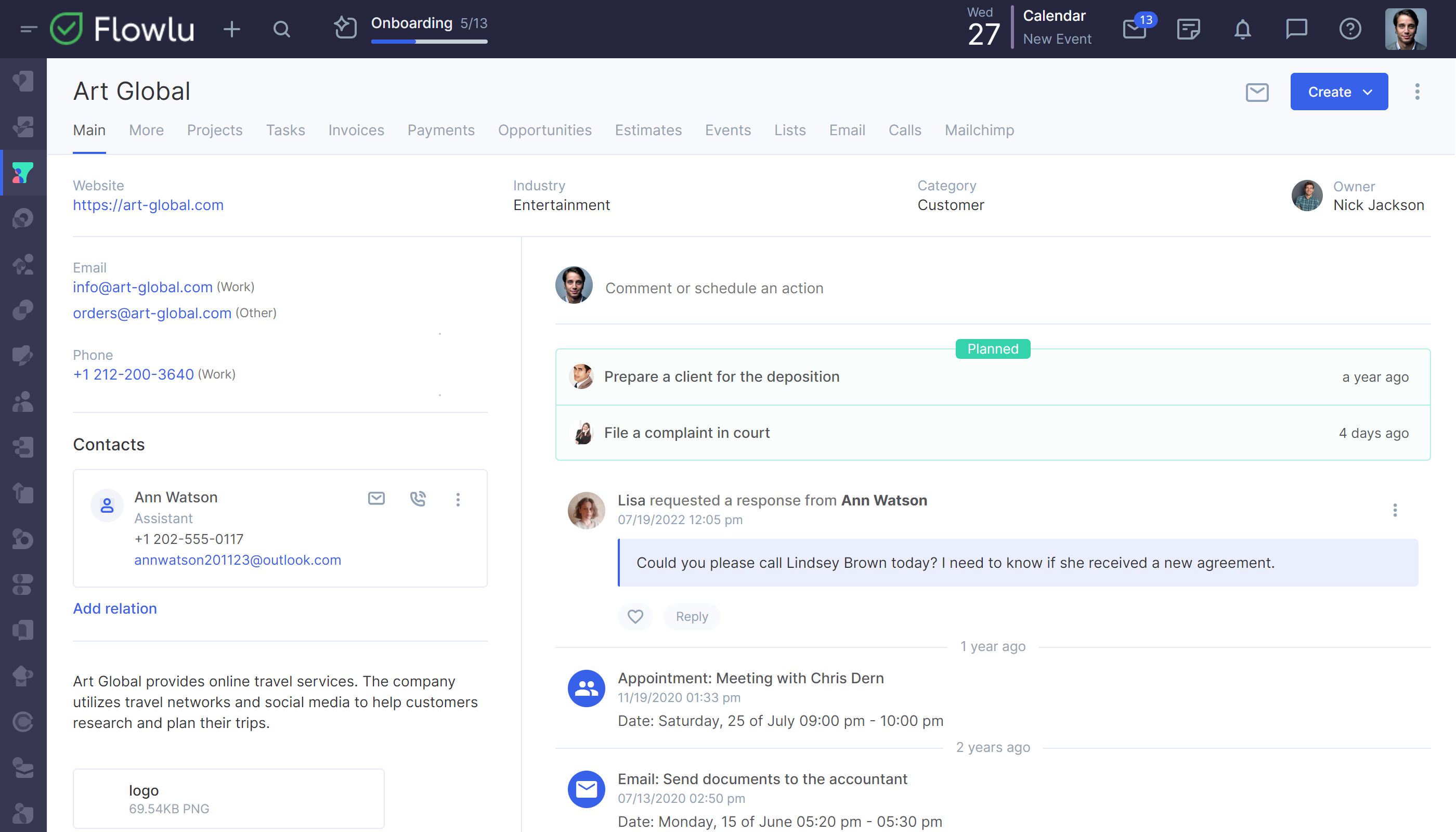 With the CRM records, a user can view information and add new details with just a couple of clicks. Even if the employee resigns, the new hire will be able to start working with the client exactly from the moment at which the work was interrupted.