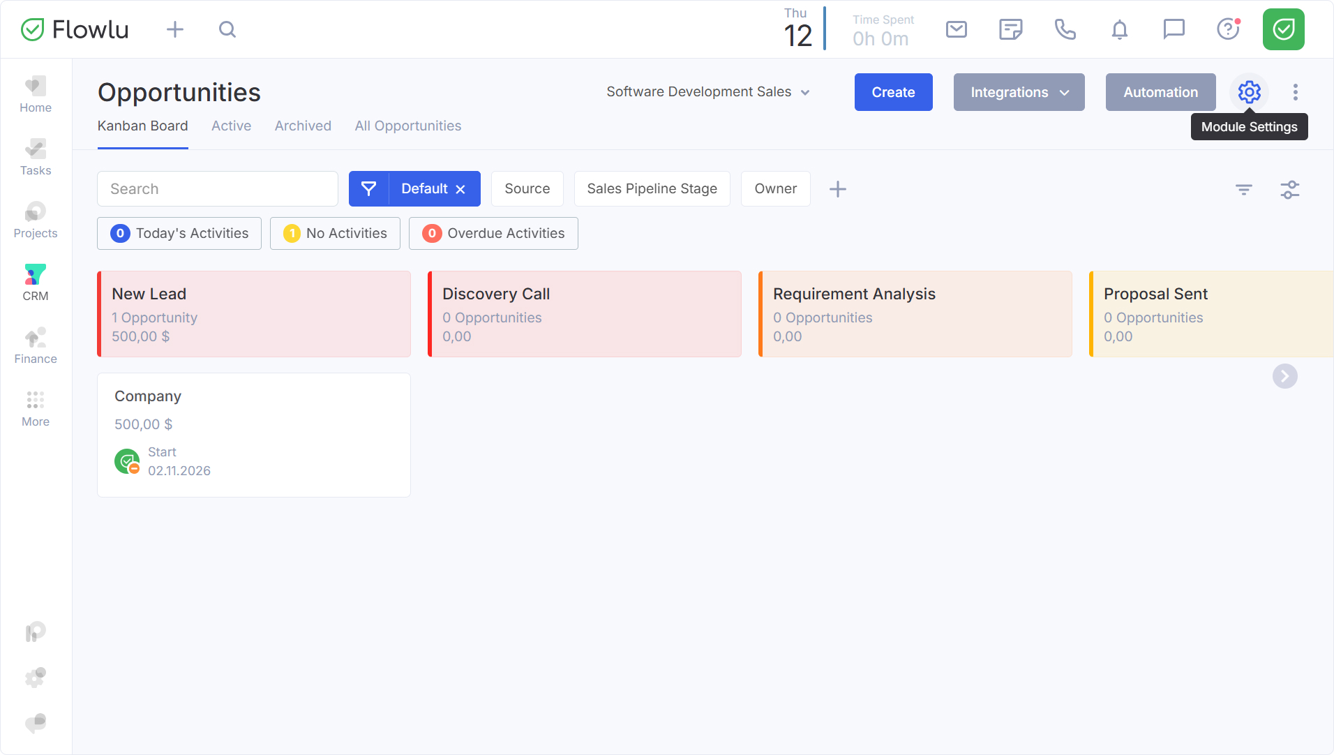 Note: The functionality for stage-specific required fields is available only on premium Flowlu subscription plans (except for legacy Team plan).