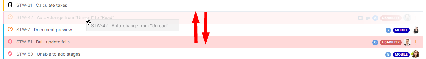 To change the issues display order in the backlog, drag the field (outside the area with the name) and move it using the Drag&Drop method.