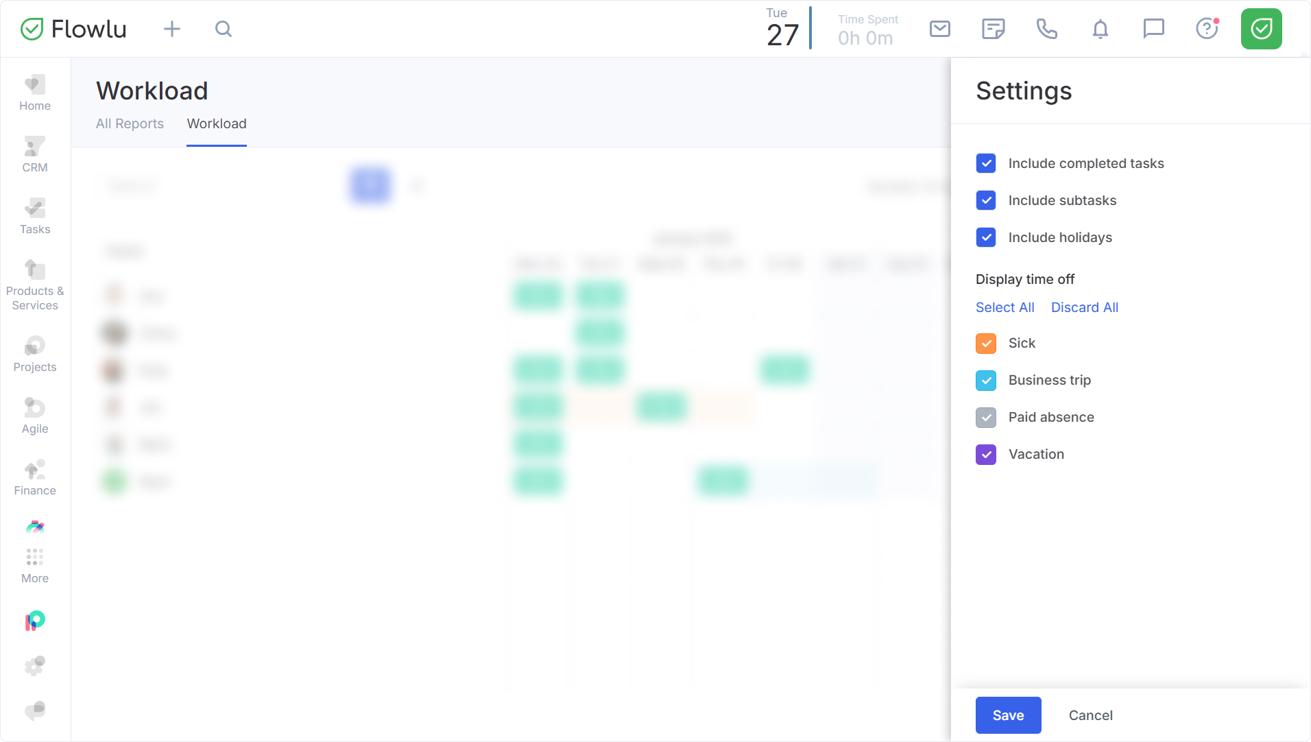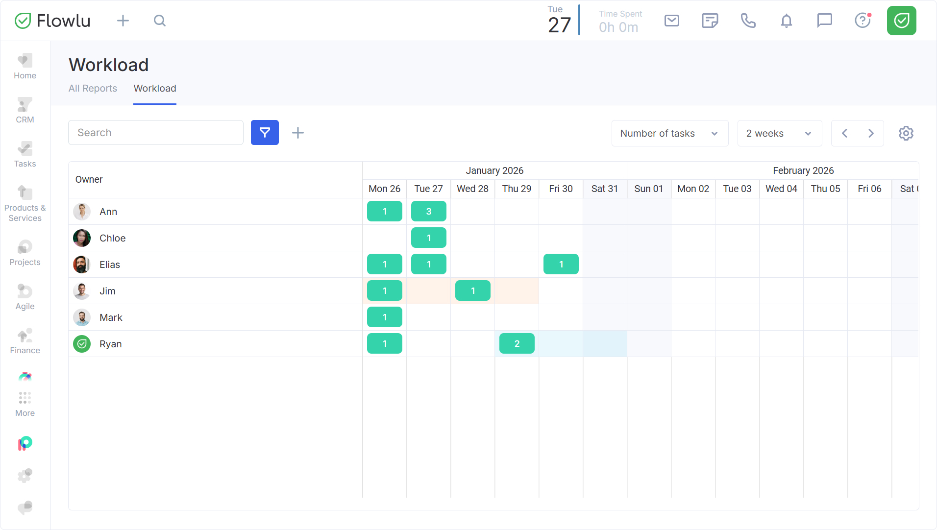You can also find the Workload in Reports. Go to Reports -> Time Tracker -> Workload.