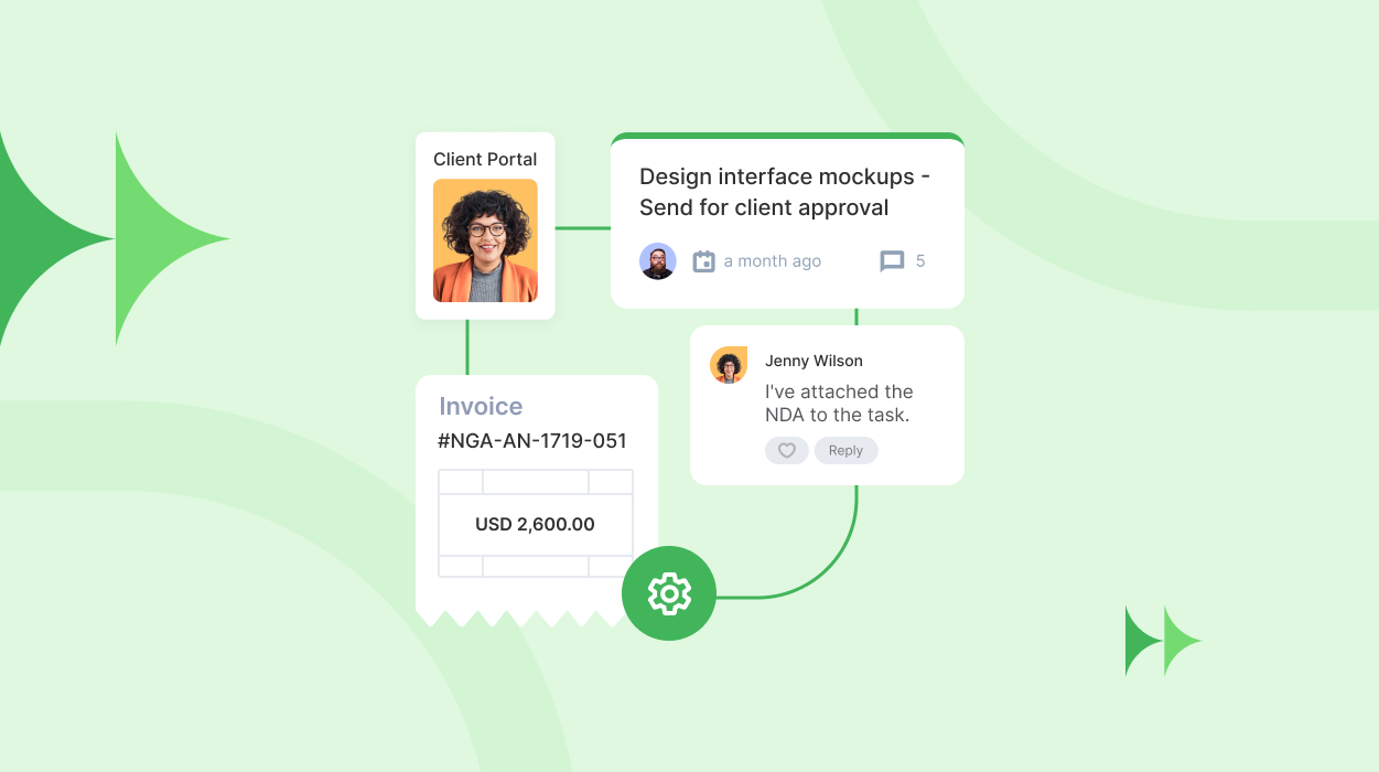 Portais do cliente facilitam que as empresas compartilhem arquivos, atualizações e feedback com parceiros e partes interessadas. A Flowlu organiza a comunicação dispersa, simplifica a adoção e anula os riscos de segurança.
