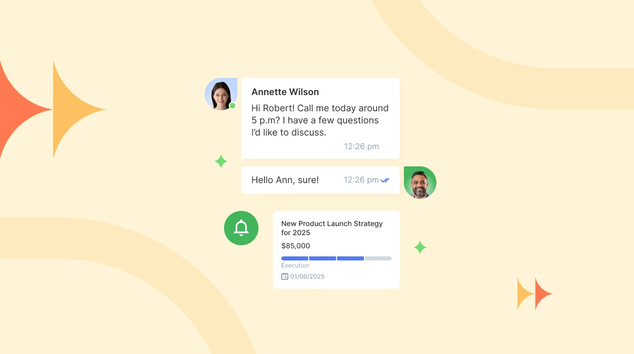 O Flowlu simplifica a comunicação com ferramentas de trabalho em equipe como chats instantâneos, comentários, menções e calendários compartilhados.