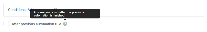 6. Após a regra de automação anterior. Você pode configurar a sequência de regras de automação. Esta opção permite que você crie uma sequência de ações quando sua regra não deve ser executada antes que a regra anterior seja aplicada.
