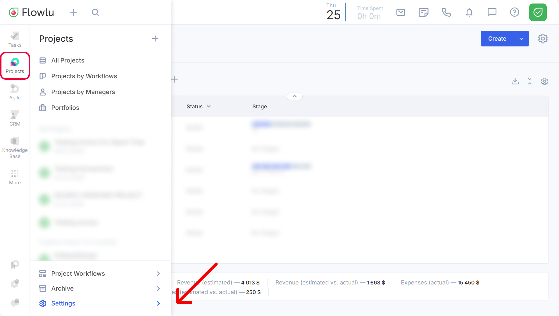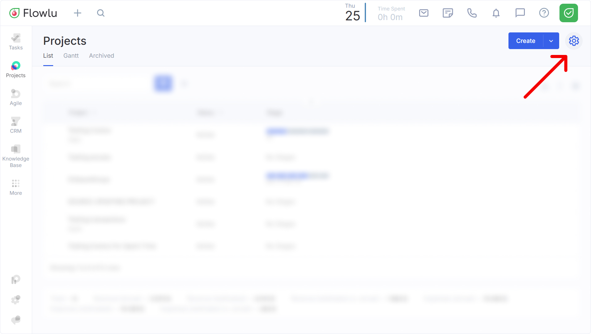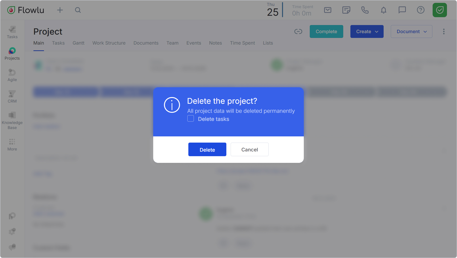 Importante: Projetos no Flowlu são excluídos permanentemente e não podem ser recuperados.