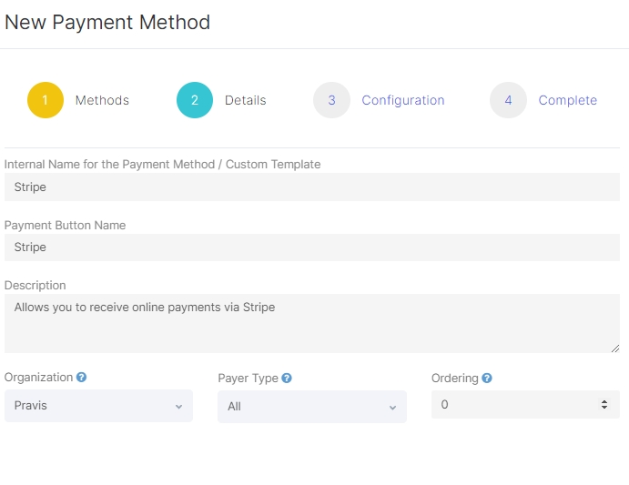 A configuração da integração está concluída, agora você pode aceitar pagamentos online através do sistema de pagamento Stripe.