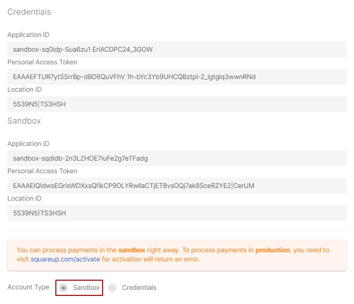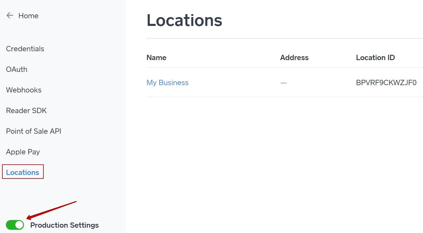 Pressione a guia Localizações e copie o ID da Localização. Para acessar suas novas credenciais do sandbox, basta alternar o seletor na parte inferior da sua navegação.