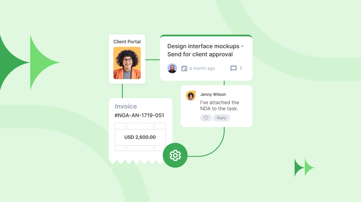 O Flowlu funciona como o melhor portal do cliente ao conectar seu trabalho interno com a visão do cliente. Ele vincula seu CRM, gestão de projetos e finanças para que, quando você atualizar uma tarefa internamente, o cliente veja instantaneamente. A transparência reduz atritos e leva a resultados melhores e mais lucrativos.